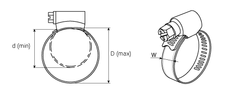 - Конструкция червячного узла обеспечивает необходимый зазор и оптимальный угол резьбы в паре винт-лента, что позволяет равномерно распределить усилие сжатия по периметру и увеличить предельный момент затяжки
